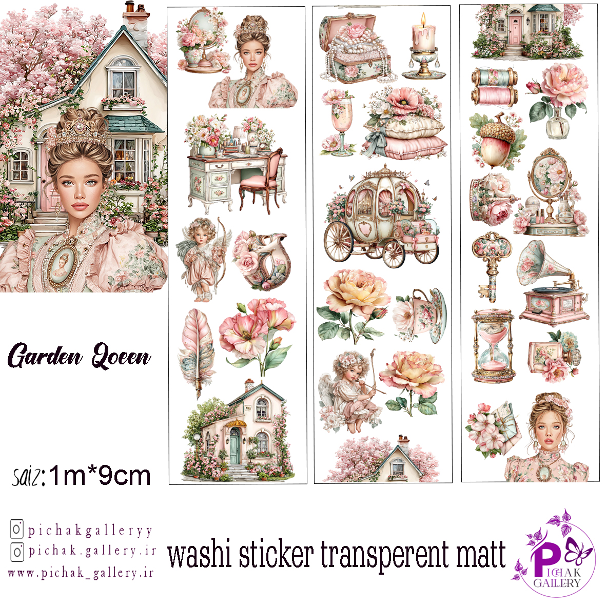 واشی استیکر شفاف باغ ملکه