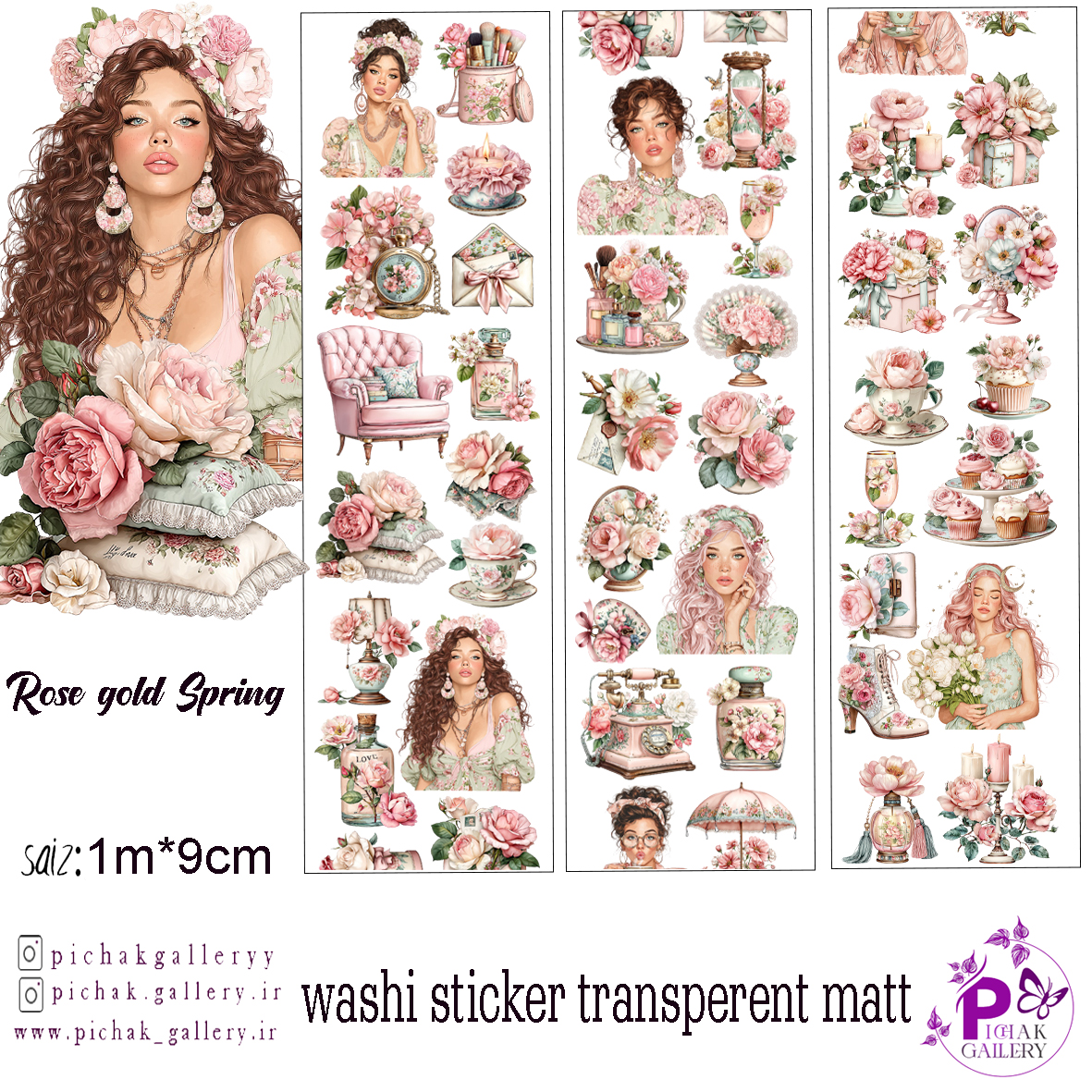 واشی استیکر شفاف بهار رزگلد