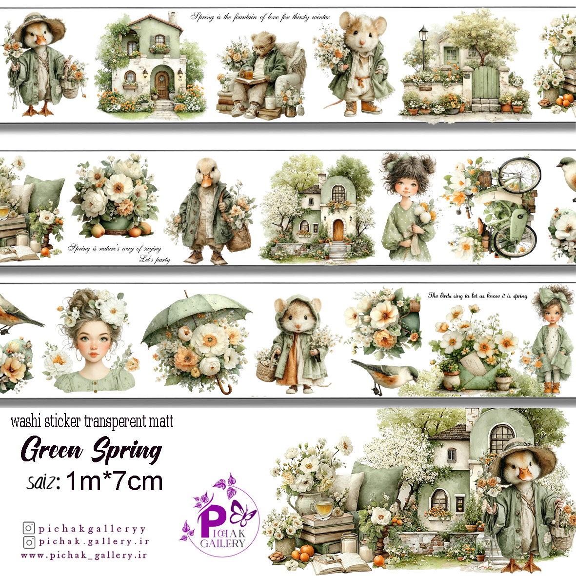 واشی استیکر شفاف بهار سبز