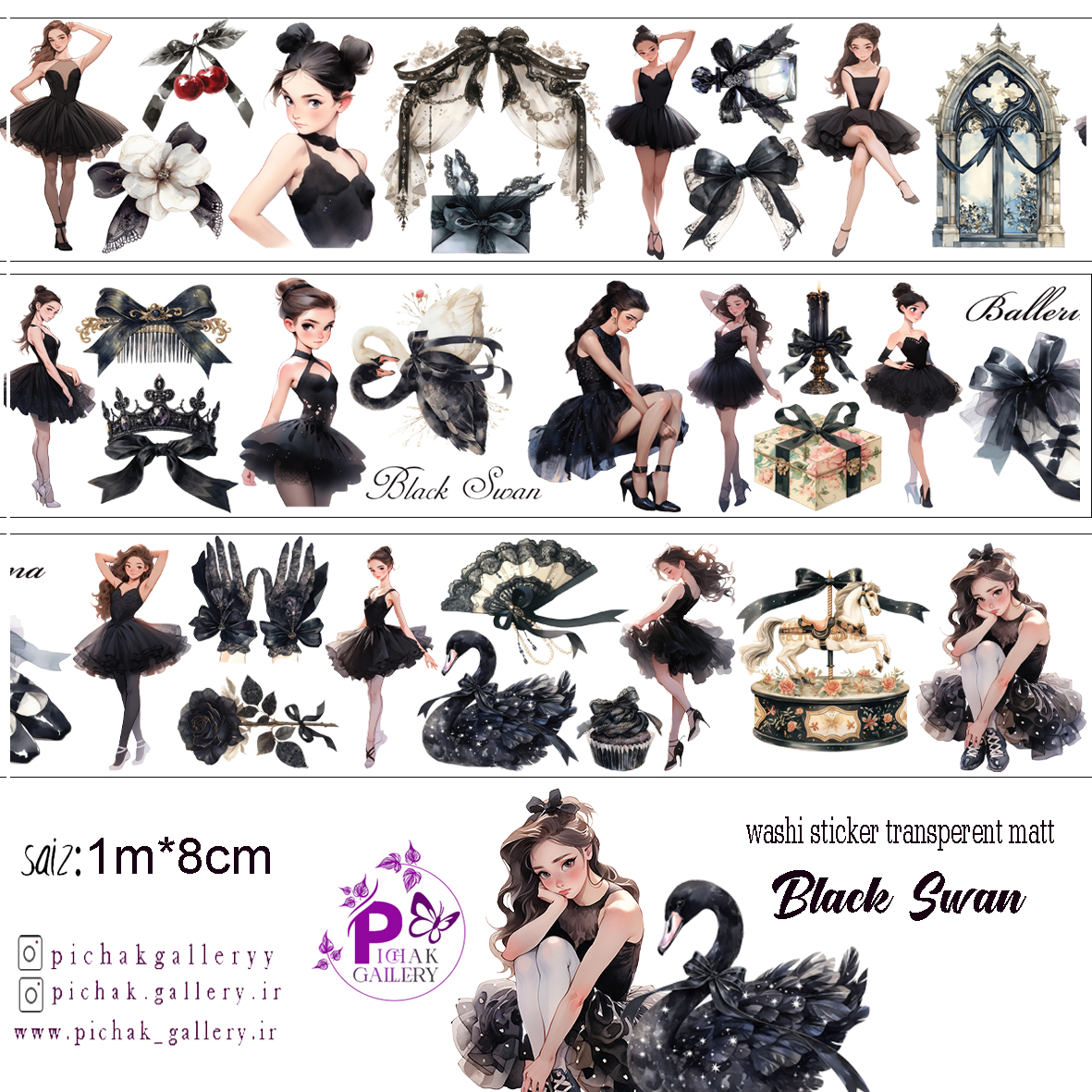 واشی استیکر شفاف قو سیاه