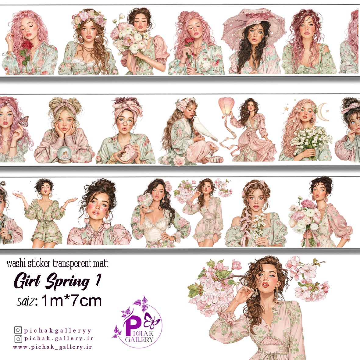واشی استیکر شفاف دختر بهار