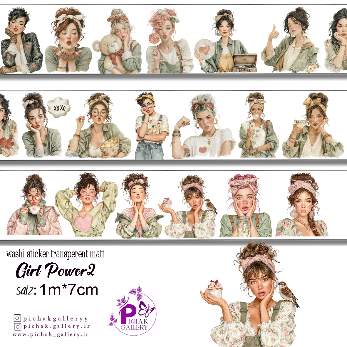واشی استیکر شفاف دختر قوی1