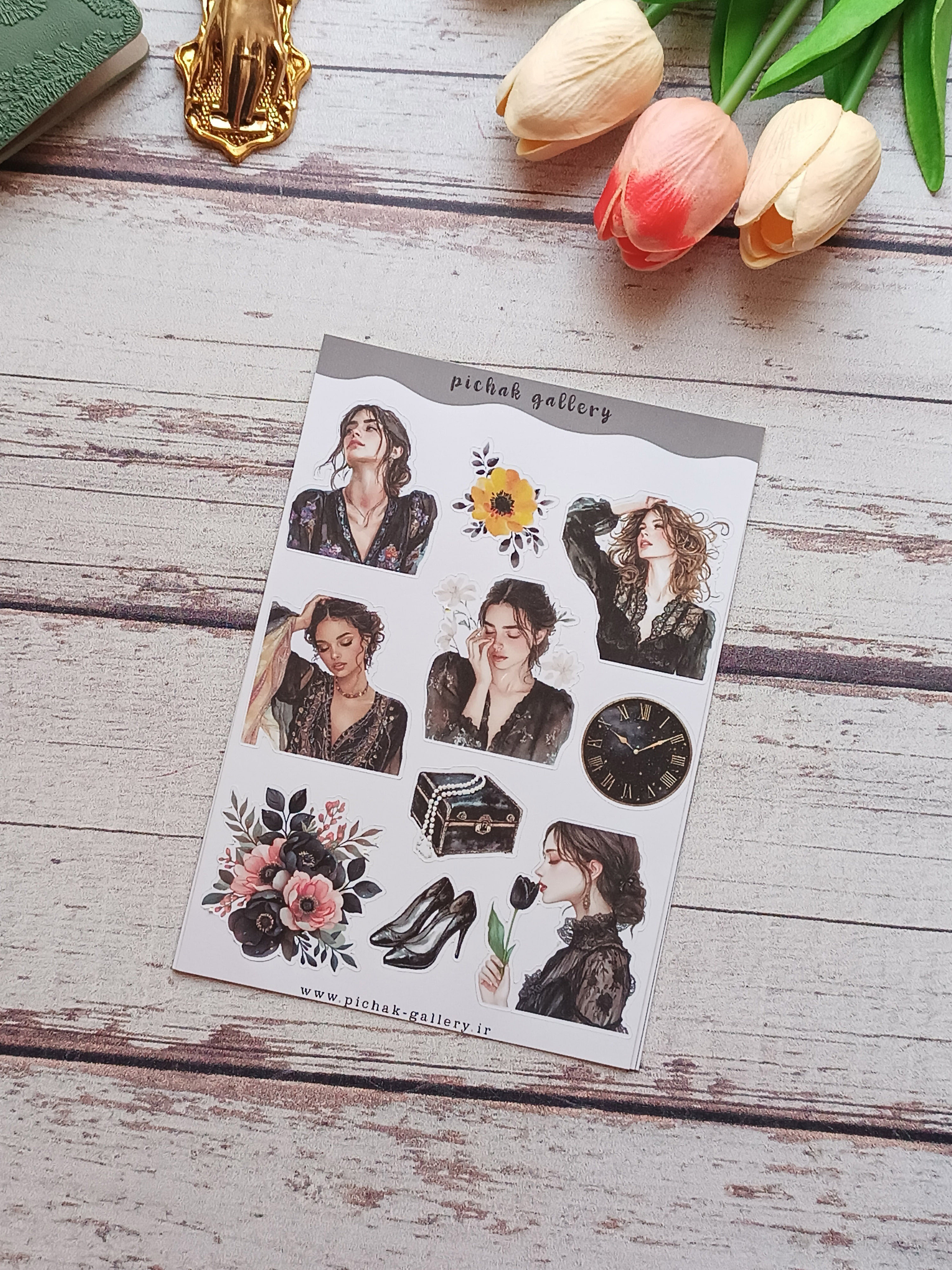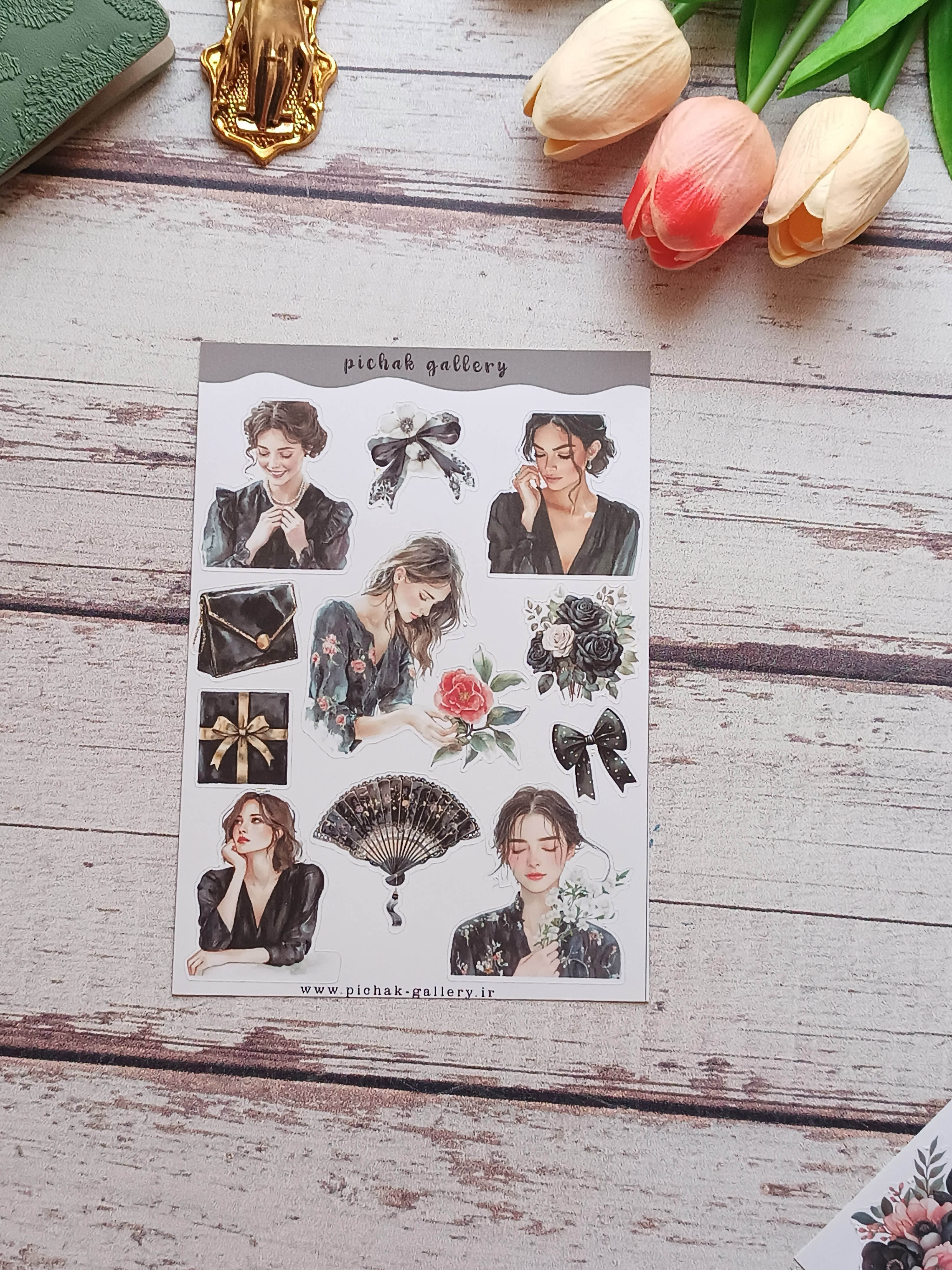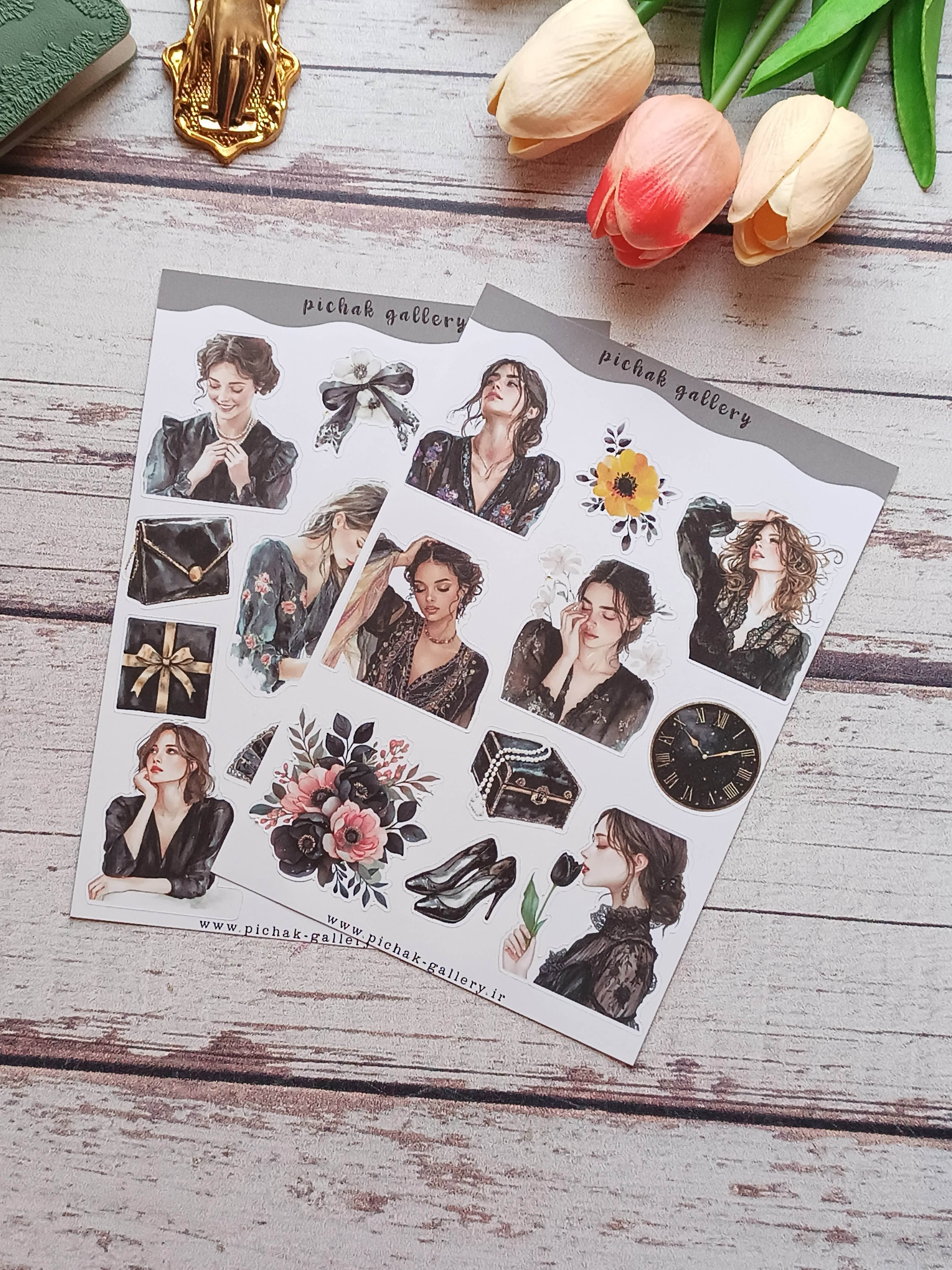 پک استیکر دختر بهار 2 برگی سایز a5 برش نیم تیغ جنس کاغذ مات چسبدار مناسب تزیین دفتر برنامه ریزی وژورنال وکارت پستال وقاب گوشی.....