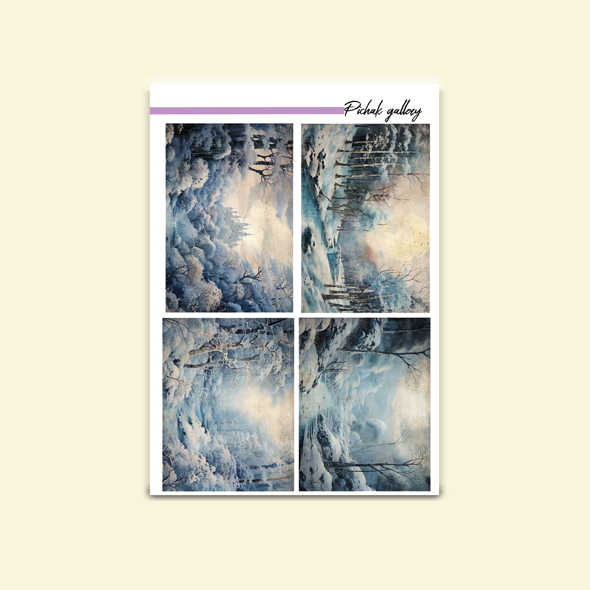 شامل 4برگ استیکر مات سایز 15*20 {A5} بدون برش 11 عددپترن 10*10 مناسب برای ساخت اسکرپ بوک،بولت ژورنال،جانک ژورنال